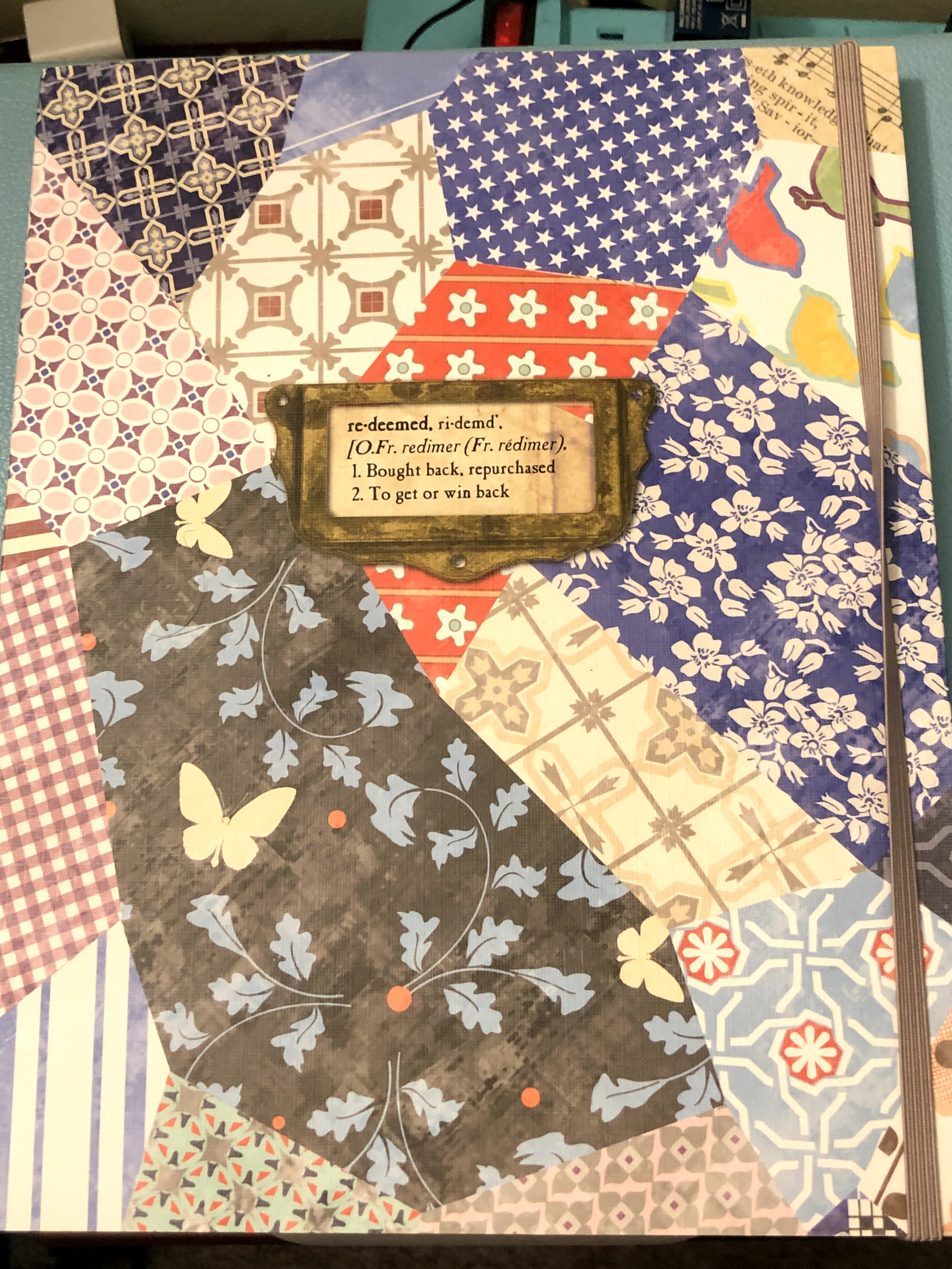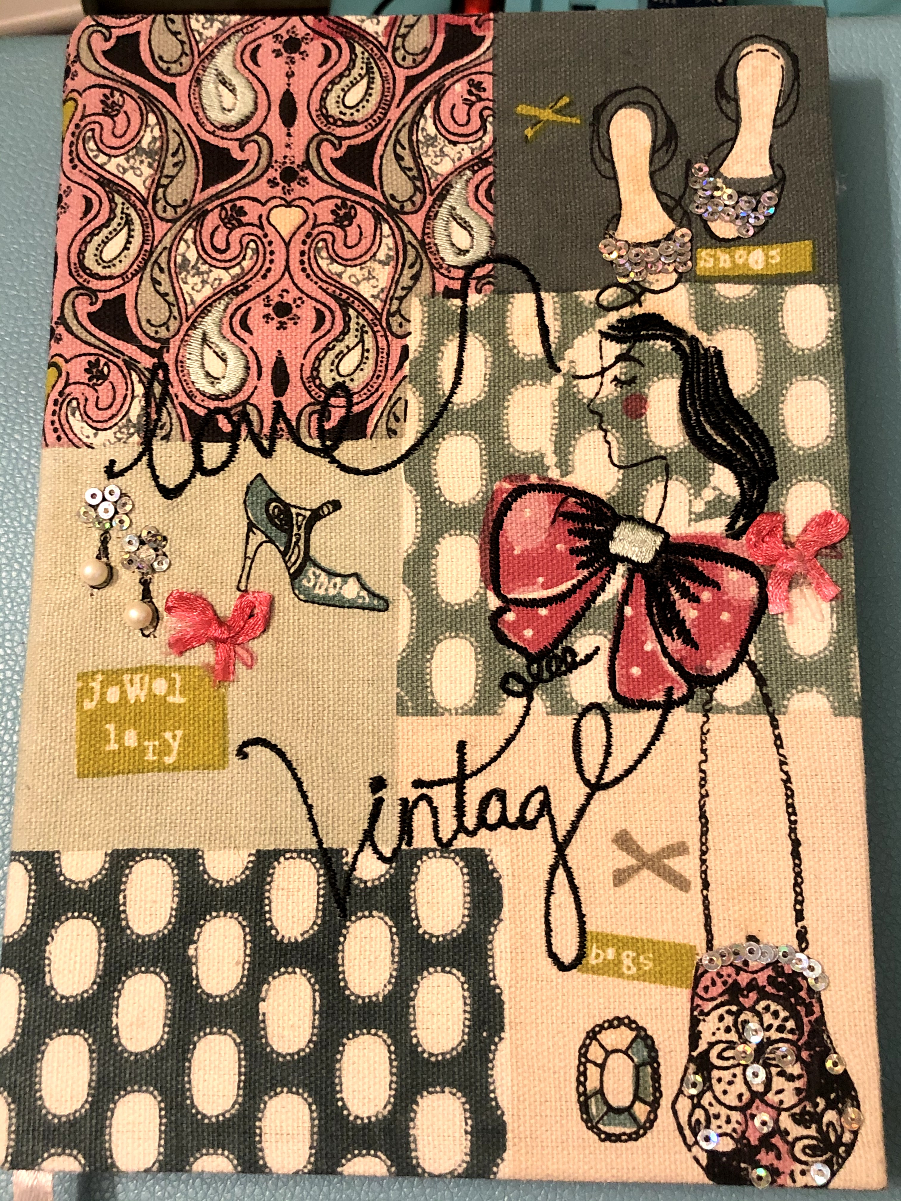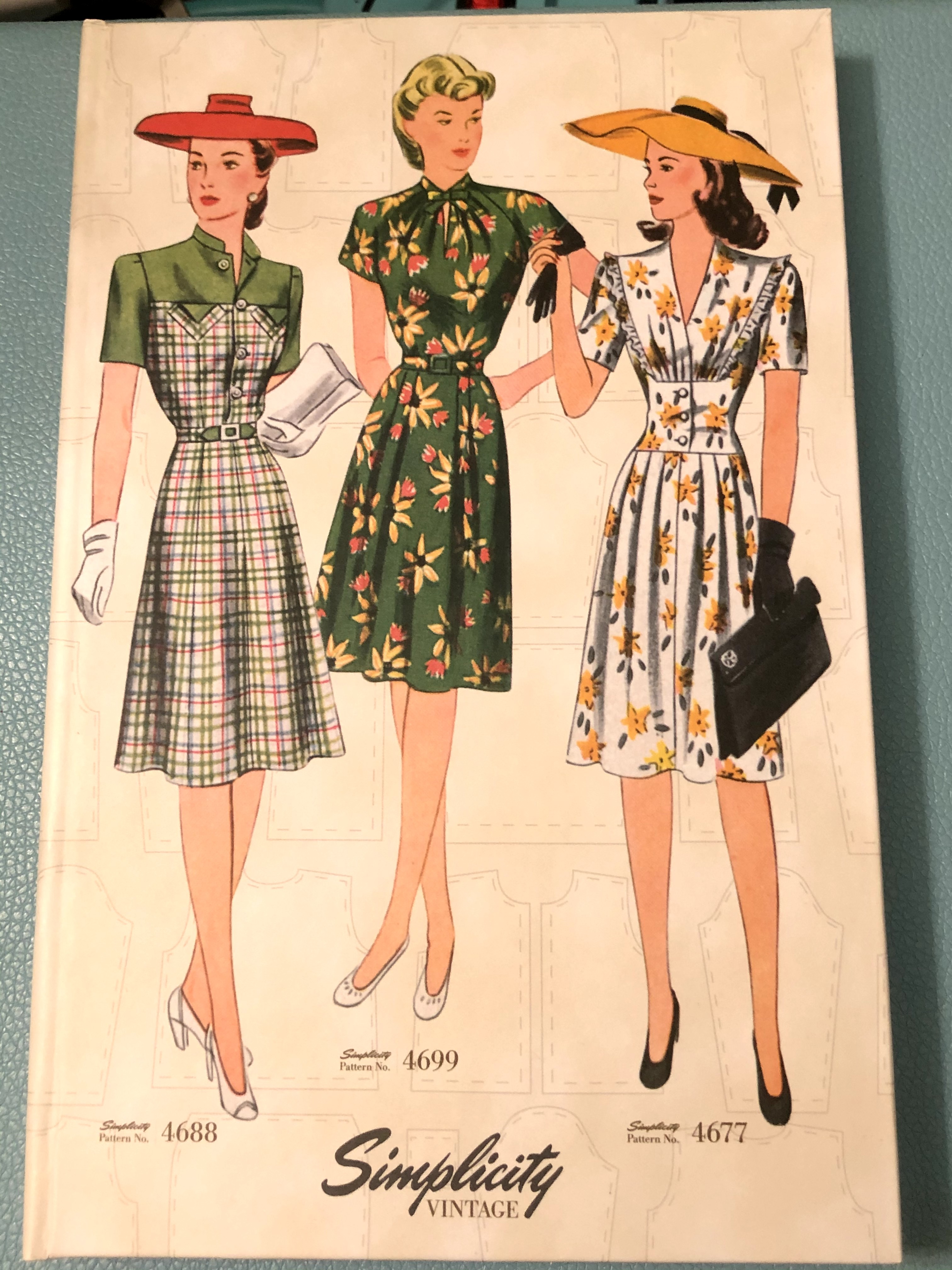 This is a Simplicity Vintage Pattern notebook. You can get this and several other designs at JoAnn's. This journal is fun because the lines are different colors, and they change every so often (pink, orange, blue).